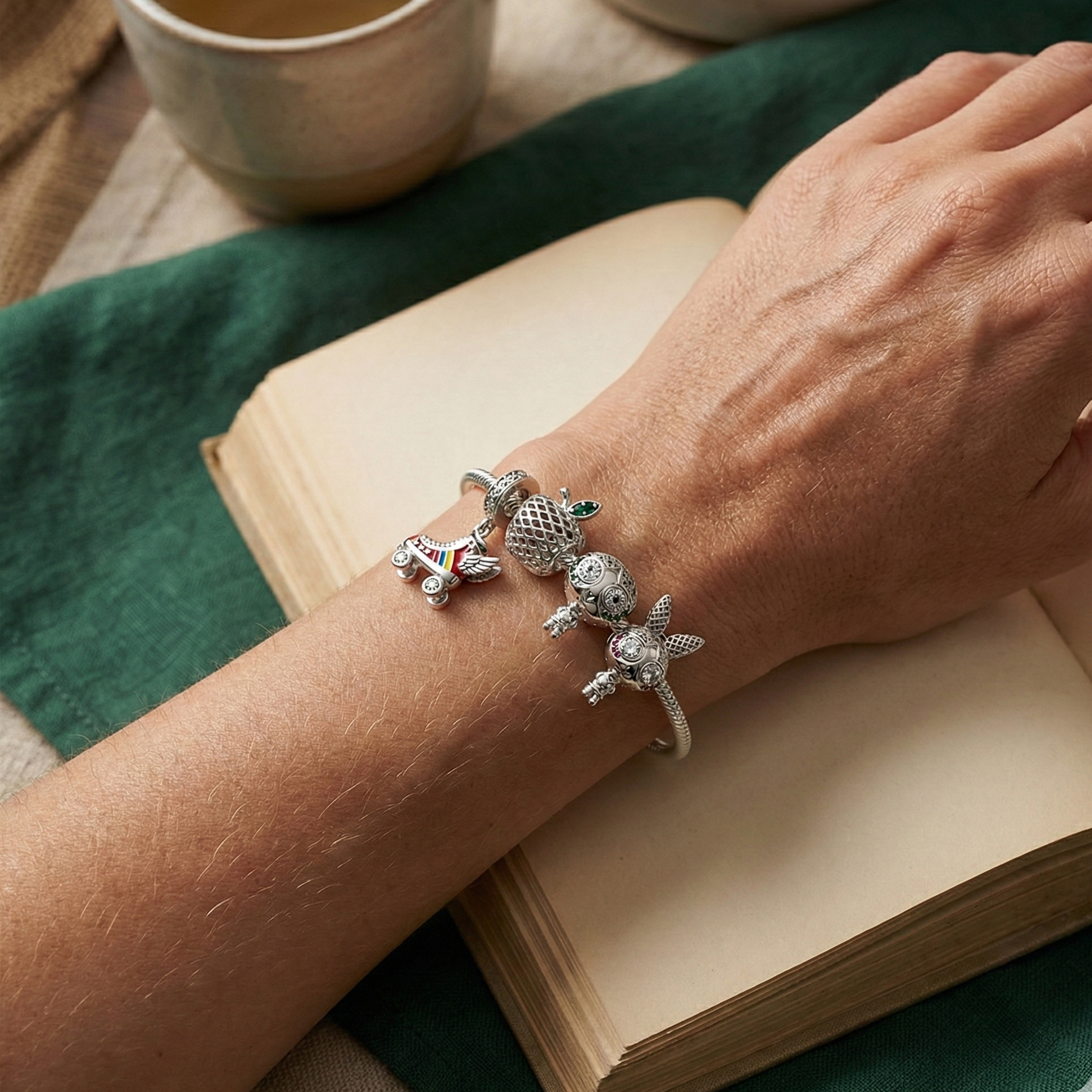 Conjunto de Colar e Brinco de Prata Coração Cravejado Rosa